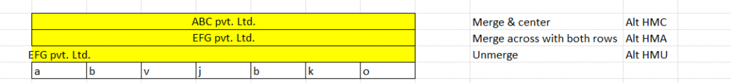- Merge & center – Alt + HMC