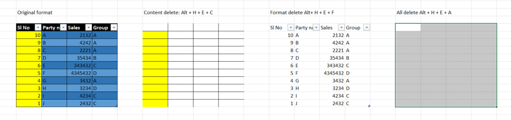 Format delete: Alt + H + E + F